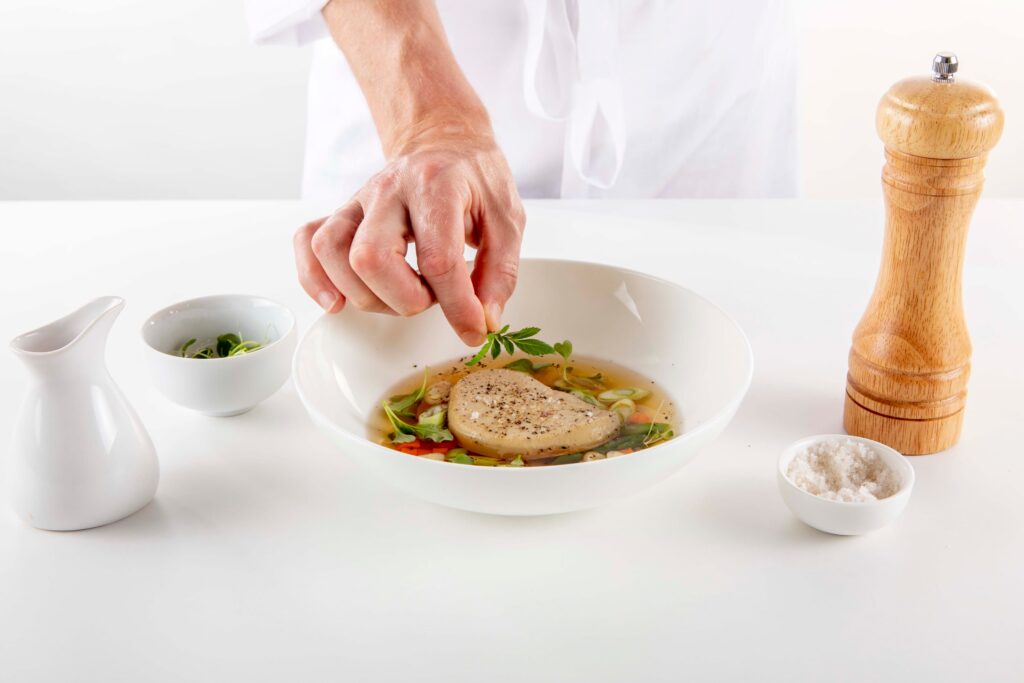Discover a delicate recipe where the poached foie gras escalope, infused in a fragrant broth, perfectly complements seasonal vegetables. A refined dish that is both flavorful and light.