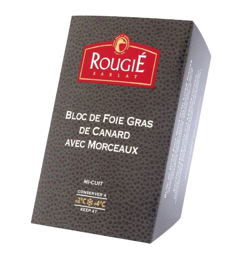 La receta imprescindible de bloque con trozos de foie gras entero de la Maison Rougié. Una receta finamente sazonada para realzar el sabor del foie gras.
