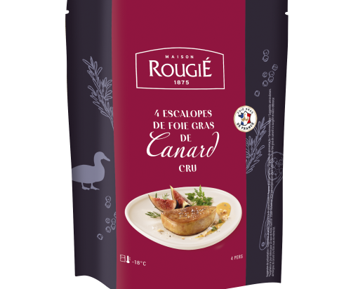 Las escalopas de foie gras de pato crudas congeladas Rougié, con un proceso de fabricación inigualable desde hace más de 25 años, se presenta en formato de 4 escalopas para pequeños placeres.