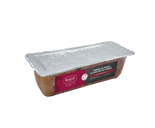 Esta terrina firmada Rougié es una de las recetas más antiguas de la gama de las Especialidades Gastronómicas. Su presentación y su sutil combinación entre la carne tierna de la paloma, las cerezas guindas y el bloque de foie gras la convierte hoy en día en una terrina reconocida que se encuentra entre los best-sellers de Rougié.