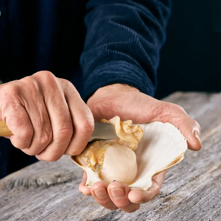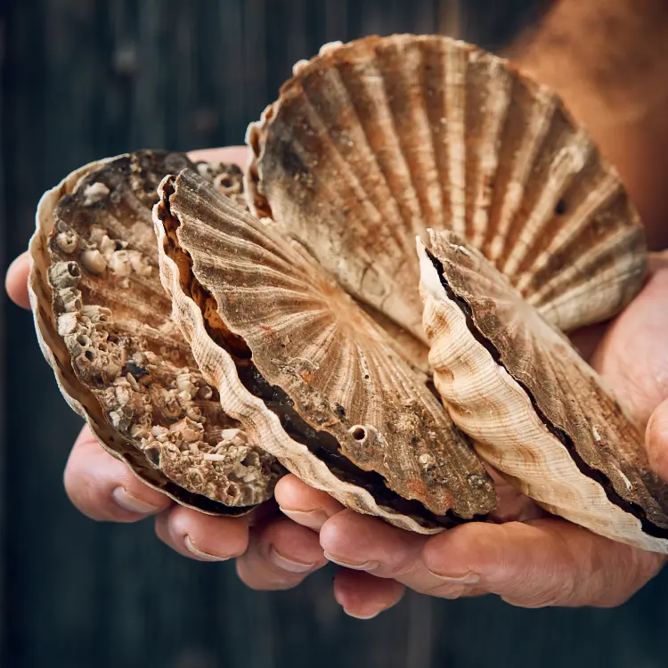 – Vieiras salvajes, que respetan la renovación de la especie, pescadas fuera de los períodos de reproducción
