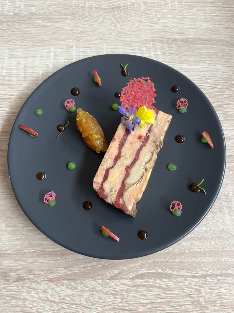 Inicio / Recetas / Platos de chefs / Compresión de foie gras a la plancha, buey charolés, compota de manzanas al calvados