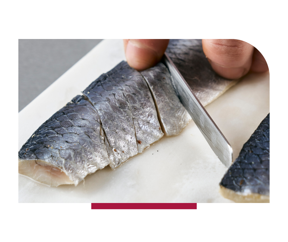 De par la délicatesse et la précision qu’elle nécessite, la technique du tranchage manuel du filet de poisson reflète toute l’expertise de nos spécialistes, longuement formés dans nos ateliers. L’obtention de tranches fines et régulières nécessite en effet un apprentissage long et exigeant. Si la coupe en tranches est la plus commune, nous maîtrisons aussi d’autres techniques de découpe : en pétales, à la scandinave ou encore en cubes façon traiteur.