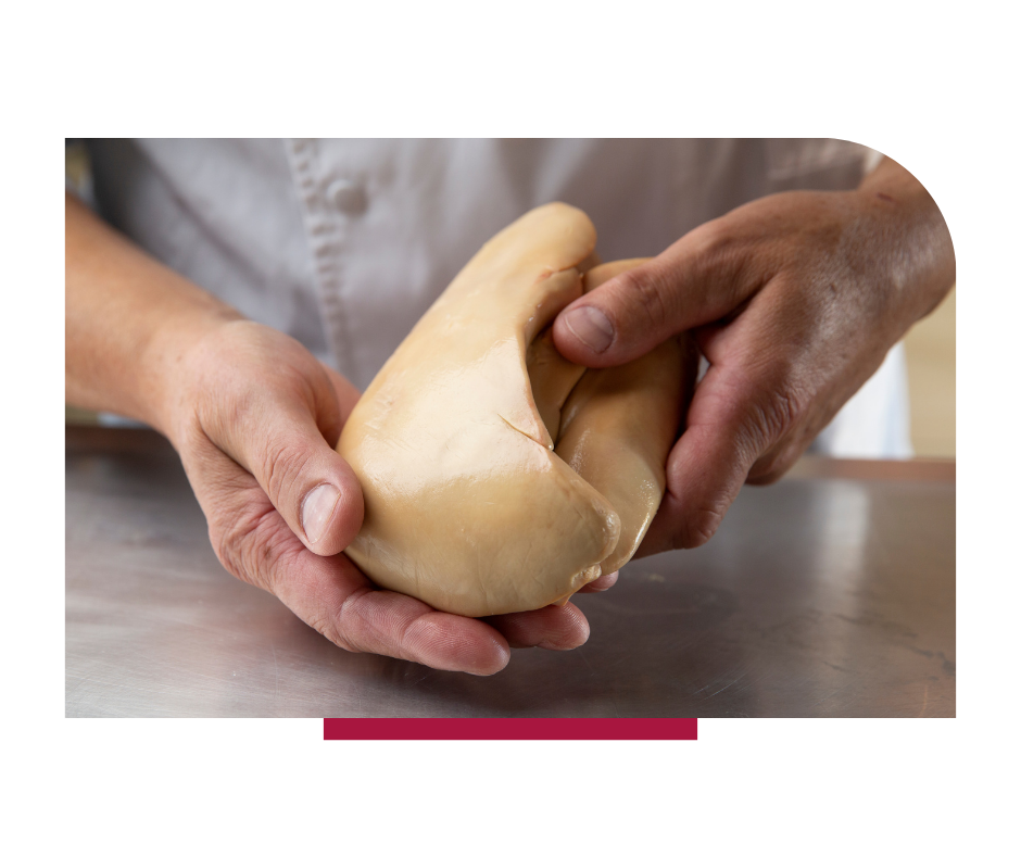 Nos préparateurs qualifiés réalisent avec soin le déveinage manuel ‘à chaud’ pour préserver l’intégrité du foie gras. Cette technique, qui exige une longue formation, consiste à retirer la veine principale sans déstructurer le foie, afin de garantir une matière intègre lors de votre remise en œuvre.