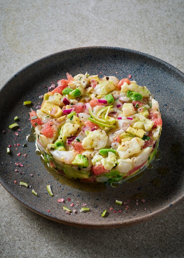 Mélanger les St jacques avec le mélange citron, pomelos et huile olive. Assaisonne